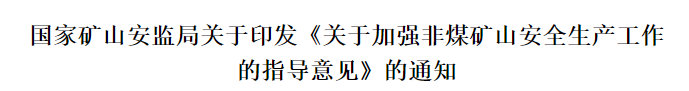 为进一步提高非煤矿山安全生产水平,推动非煤矿山行业安全高质量发展,国家矿山安全监察局制定了《关于加强非煤矿山安全生产工作的指导意见》。
