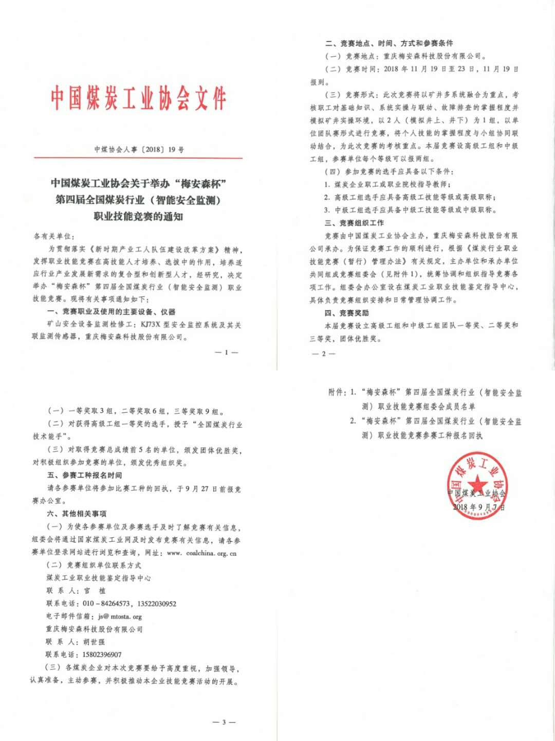 為貫徹落實(shí)《新時(shí)期產(chǎn)業(yè)工人隊(duì)伍建設(shè)改革方案》精神,發(fā)揮職業(yè)技能競賽在高技能人才培養(yǎng)、選拔中的作用,培養(yǎng)適應(yīng)行業(yè)產(chǎn)業(yè)發(fā)展新需求的復(fù)合型和創(chuàng)新型人才,中國煤炭工業(yè)協(xié)會(huì)研究決定舉辦“梅安森杯”第四屆全國煤炭行業(yè)(智能安全監(jiān)測)職業(yè)技能競賽。