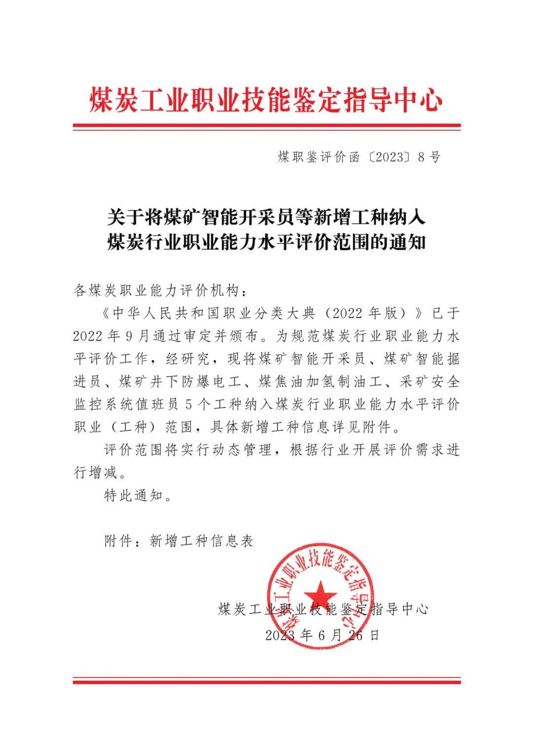 原文地址:關(guān)于將煤礦智能開采員等新增工種納入煤炭行業(yè)職業(yè)能力水平評價范圍的通知 - 通知公文 - 中國煤炭工業(yè)協(xié)會 (coalchina.org.cn)