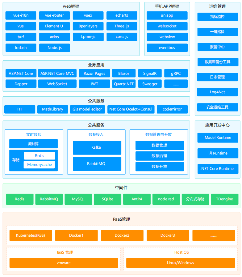 公共服務(wù):分別實(shí)現(xiàn)前端可視化頁面編排、WebAPI接口編排、流程編排、規(guī)則配置、2D/3D建模渲染、融合定位接入管理、視頻接入管理。