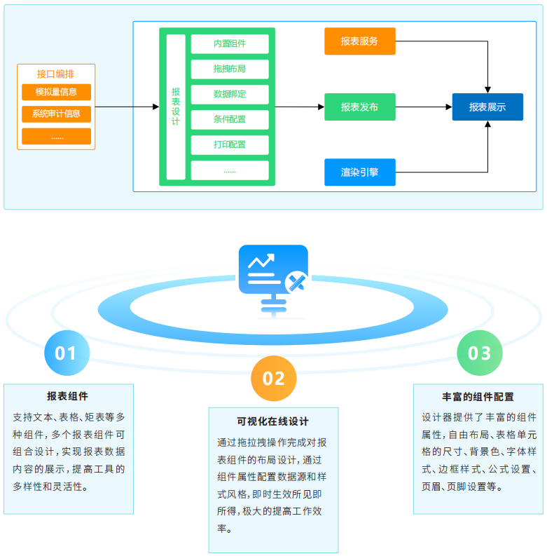 報(bào)表設(shè)計(jì)器以易用性、高性能、高安全性為核心,幫助企業(yè)快速創(chuàng)建多樣化、高精度的業(yè)務(wù)報(bào)表,實(shí)現(xiàn)數(shù)據(jù)的結(jié)構(gòu)化展示與分析。支持多種數(shù)據(jù)組件設(shè)計(jì)(表格、交叉表、文本標(biāo)簽等),用戶可通過拖拽方式實(shí)現(xiàn)報(bào)表界面布局、格式設(shè)置、數(shù)據(jù)源綁定,所見即所得實(shí)現(xiàn)精準(zhǔn)設(shè)計(jì),同時(shí)支持各種計(jì)算公式的配置,滿足復(fù)雜計(jì)算需求。