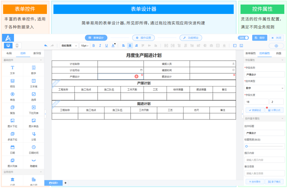 智能表單通過低代碼、高靈活、強(qiáng)集成的特性,幫助企業(yè)快速實(shí)現(xiàn)業(yè)務(wù)過程數(shù)字化轉(zhuǎn)換,提升數(shù)據(jù)采集與處理效率,降低應(yīng)用功能設(shè)計(jì)開發(fā)成本。設(shè)計(jì)器提供豐富的表單控件(如輸入框、下拉框、附件上傳、電子簽名等),支持零代碼拖拽配置,支持主從表、多頁簽、表格等高級(jí)布局,無需開發(fā)即可快速設(shè)計(jì)復(fù)雜的業(yè)務(wù)表單,滿足復(fù)雜業(yè)務(wù)數(shù)據(jù)填報(bào)場景需求。