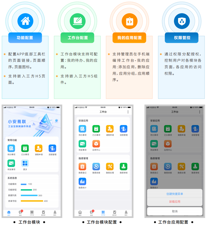 2、低代碼敏捷開發(fā):小安易聯(lián)的應(yīng)用設(shè)計(jì)工具允許開發(fā)者使用圖形化操作界面進(jìn)行設(shè)計(jì)和配置,通過可視化拖拉拽而非傳統(tǒng)編程方式來快速構(gòu)建應(yīng)用程序,可快速完成業(yè)務(wù)功能開發(fā),降低系統(tǒng)交付人員技術(shù)門檻,同時(shí)保持設(shè)計(jì)應(yīng)用的靈活性和可擴(kuò)展性。