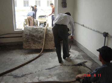 以確保建筑物的安全,注漿孔水平間距為1m,分別布置垂直注漿孔,室內地坪以鉆洞法解決,不撬開地板。施工中采用了我公司生產的GS20E灌漿泵,實現相鄰注漿孔注漿及多序注漿相結合的方案,對地基進行加層補強,達到設計承載力的要求。目前加層補強施工已完工,經檢測未發現異常,效果很好。