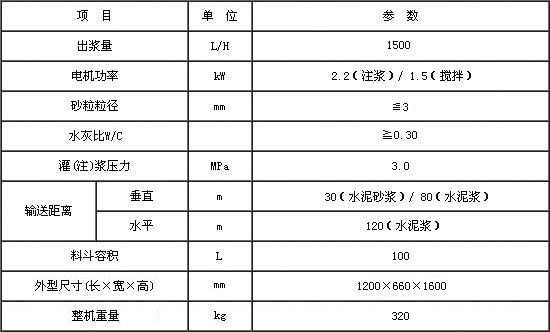 本機由攪拌機構、增壓輸送機構和電氣系統組成。增壓輸送機構由電動機、減速器、輸送螺旋、增壓定子總成、測壓接頭、注漿管等組成。其特點如下: